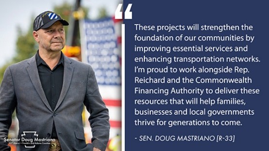 Rep. Chad Reichard and I were happy to secure more than $2.4 million in state grants for projects in Franklin County that strengthen the foundation of our communities by improving essential services and enhancing transportation networks. The following grants were awarded through the PA Small Water and Sewer Program: