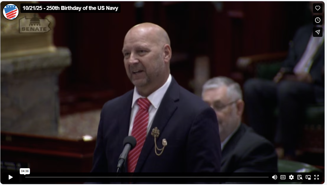 This week I formally called on President Trump to end the Obama-Biden era Solar Radiation Modification (SRM) program — a reckless, multibillion-dollar geoengineering experiment that diverts taxpayer dollars from national defense and community needs. Please take a moment to read my letter. William Penn Day at the State CapitolOn Wednesday, I hosted a William Penn Day Celebration at the State Capitol. We had some outstanding families join us for the event and a tour of the beautiful Senate Chambers afterwards. Thank you for joining us! Senate Shadow, Delainey RobersonOn Wednesday, Delainey Robertson shadowed me and my staff at the Capitol! At just 11 years old Delainey took on the challenging role of organizing the Annual Jeremy Redding Memorial Ride. By the end of 2024, she officially established the non-profit Jeremy Redding Memorial Foundation with the mission to honor all veterans educate by awarding scholarships and heal by partnering with For the Love of a Veteran to help raise funds for vets in need of the stellate ganglion block of PTSD treatment. 2nd National Move Over Day 2025This past Saturday I joined the TIM Heroes, Tyler Laudenslager Memorial Fund & PA Turnpike Commission for National Move Over Day 2025. It was an honor to speak and recognize Tyler Laudenslager, and his family. Tyler was just 29 years old when he lost his life while trying to help others along the highway. “Deaths like Tyler’s could-and should-have been prevented.” When you see those flashing lights, move over. Slow down. Think of every first responder who never made it home. Operation Enduring Freedom (OEF) Recognition ServiceMy Operation Enduring Freedom Event was outstanding! It is important to remember and honor OEF alongside some amazing people. We were blessed by Rabbi Mitch Triestman’s prayer, Posting/Retiring of the Colors by the American Legion Post 272 Linglestown, a beautiful rendition of the National Anthem and God Bless America by Jaymie Bellet, and remarks by Col. John Wenzel, Commander 166th Regiment PA Army National Guard. Please also watch my Senate Floor remarks: 10/20/25 – Remembering Operation Enduring Freedom My Remarks on US Navy’s 250th BirthdayPlease enjoy my Senate floor remarks on the Navy’s 250th birthday. Senate Approves State Budget that Funds Essential Services Without Raising Taxes